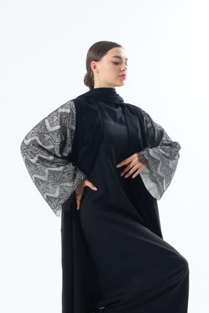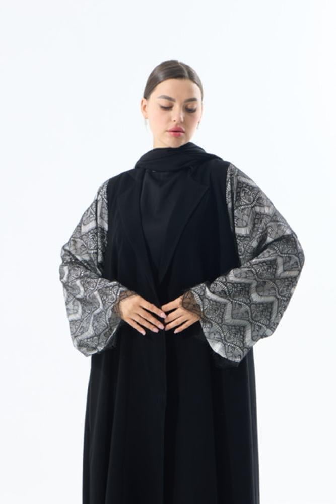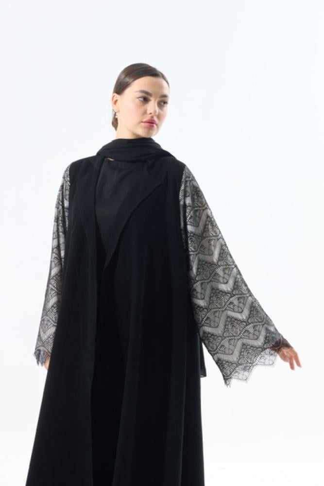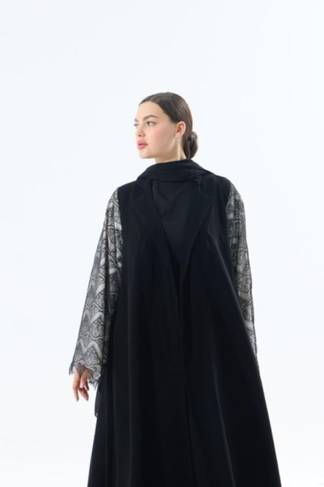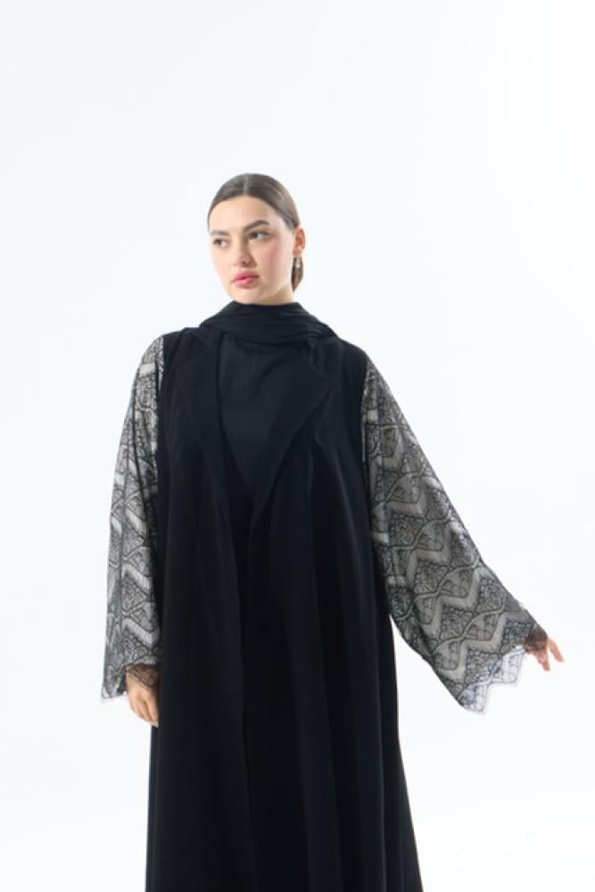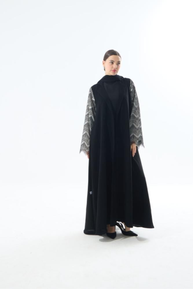 •اللون : اسود والاكمام دانتيل مبطنه بلون ابيض