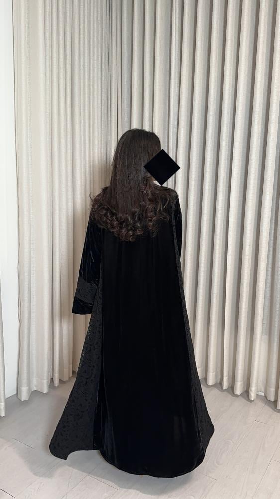 •القماش مخمل اسود كوري ودانتيل