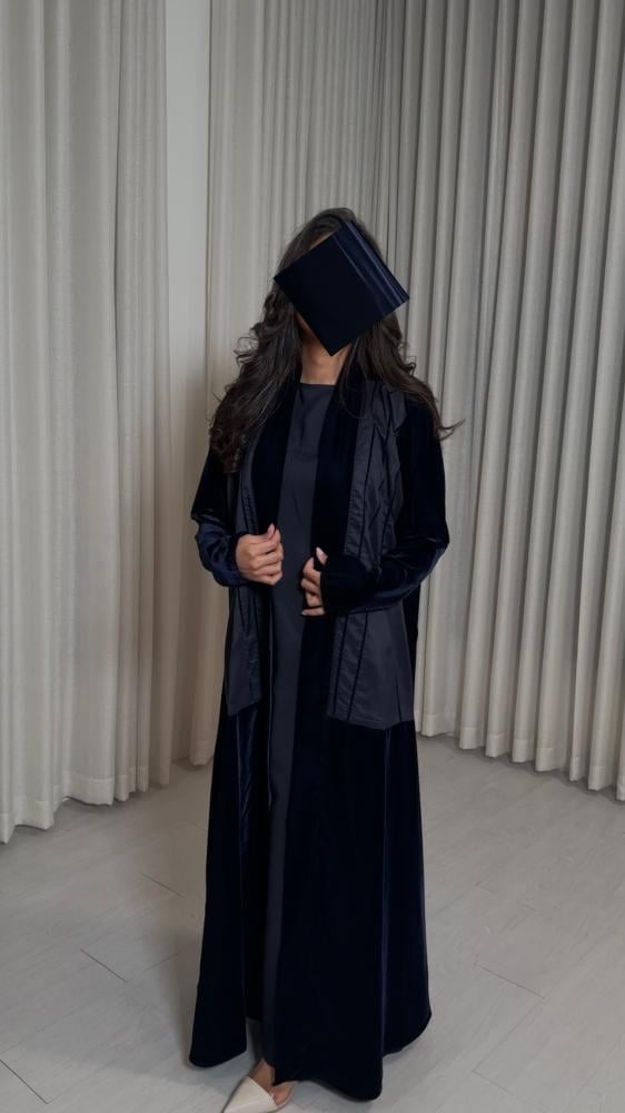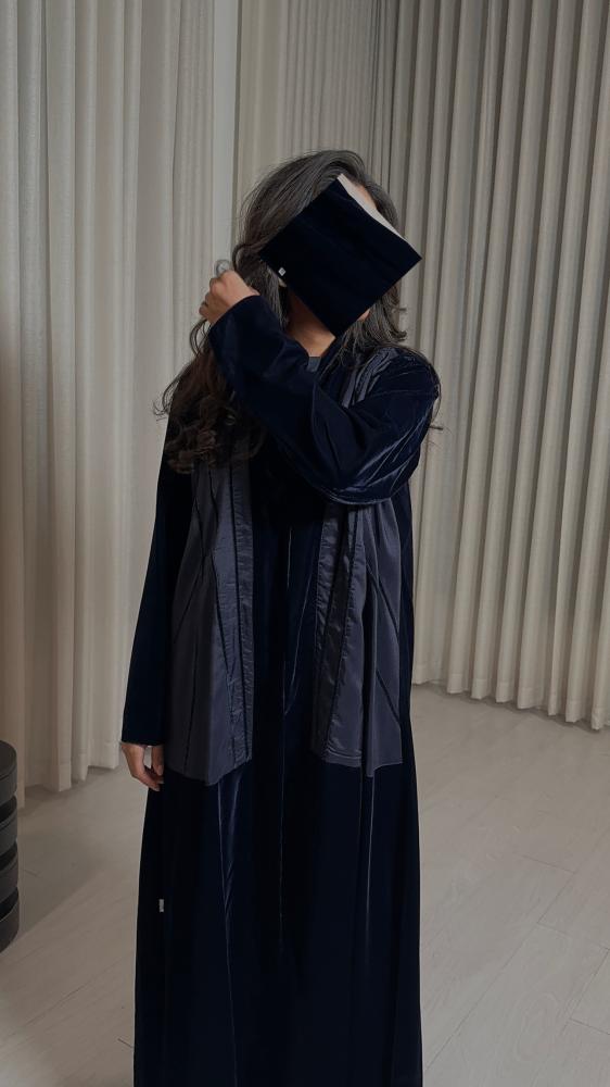 •القماش مخمل كوري وبالنص كريب محدد بالقيطان المخمل