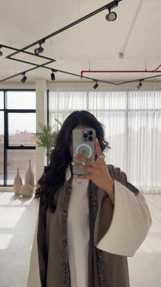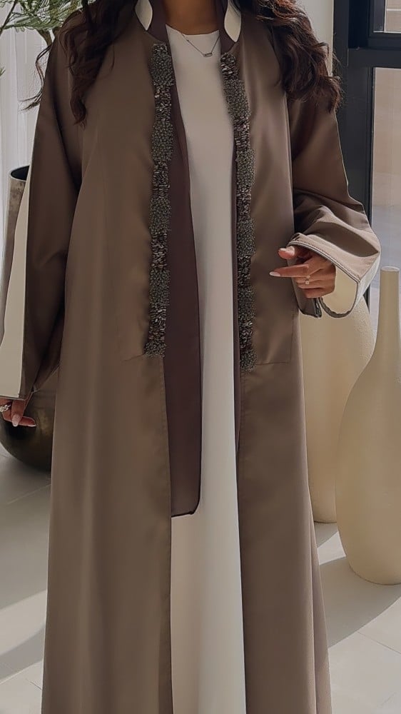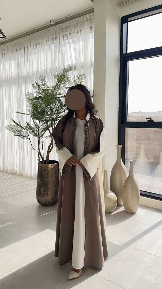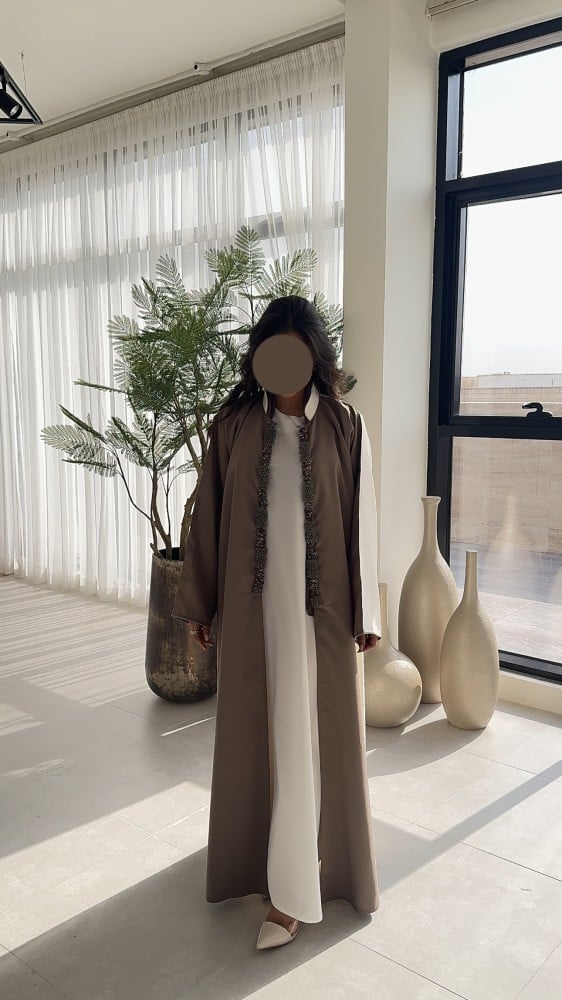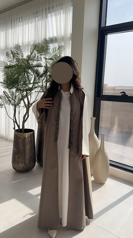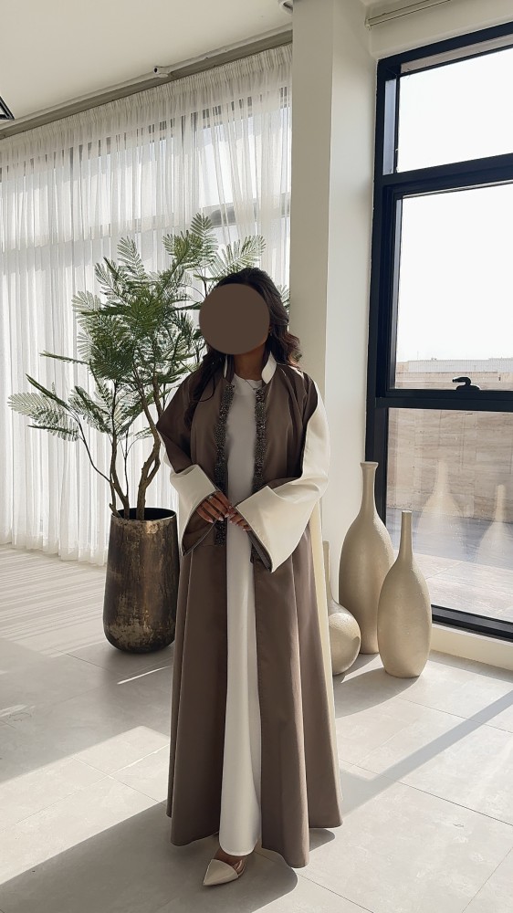 • طرحة بيج غامق نفس لون العباية