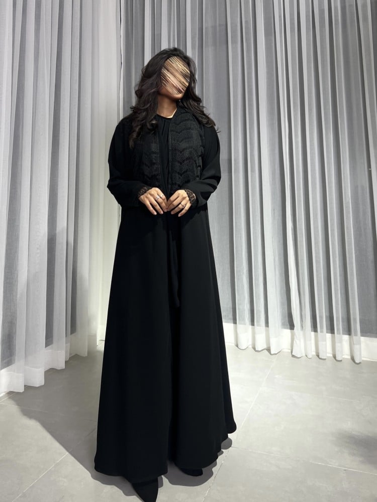 •القماش : كريب Xدانتيل بالامام والاكمام