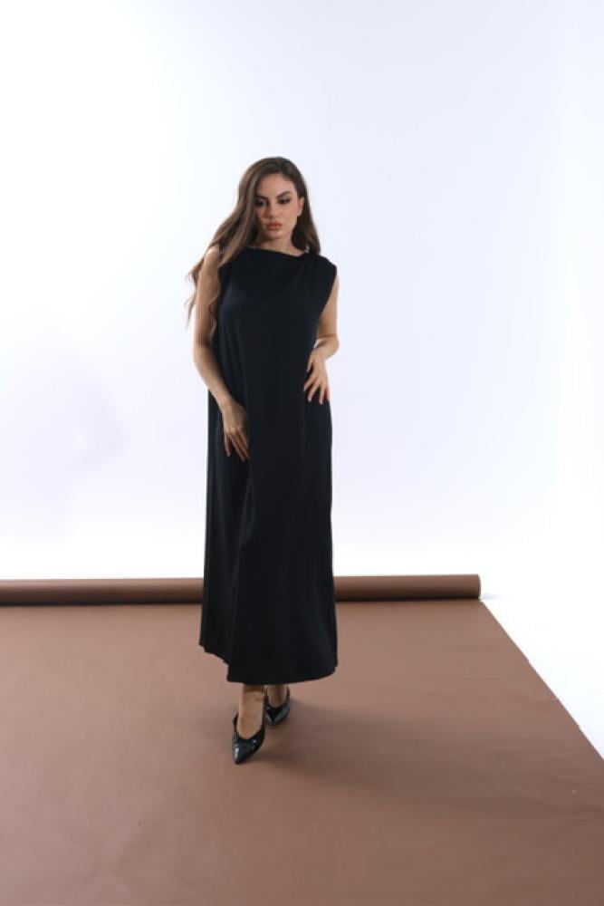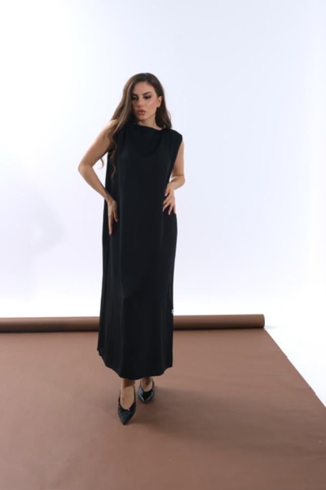 •فستان أسود تحت العبايه بخامة كريب خفيف " غير شفاف "