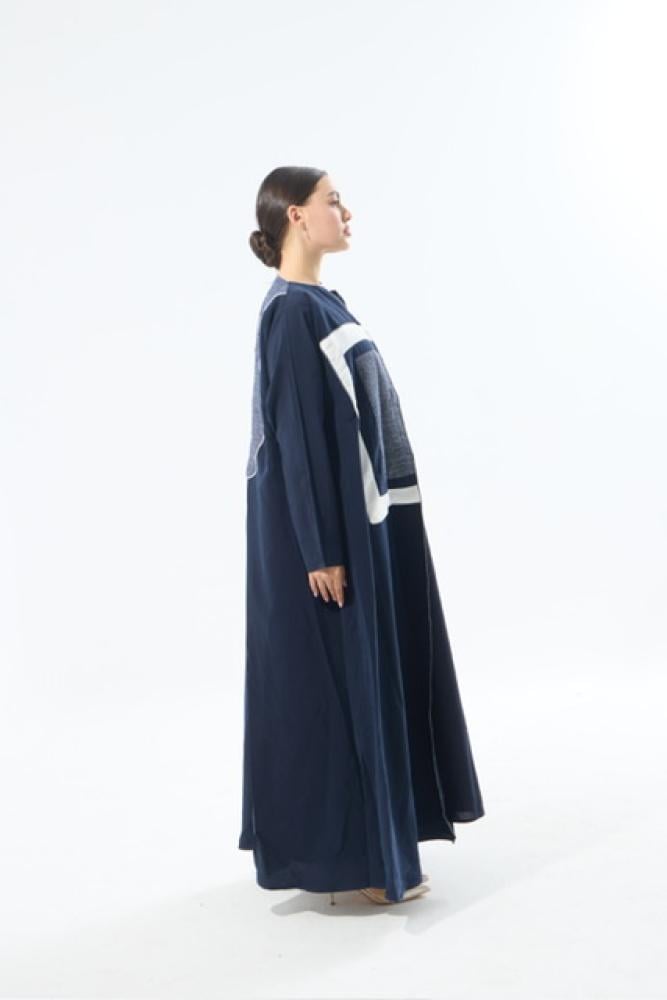 اللون : كحلي ولينن كحلي مخطط وابيض