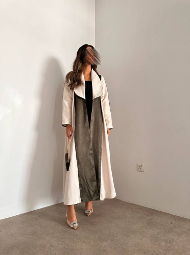 •القماش : كريب مع اضافة قماش مشجر وسادة بيج ودانتيل