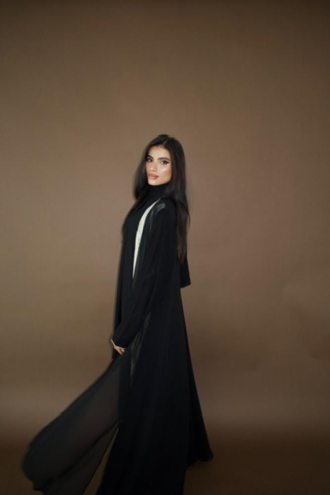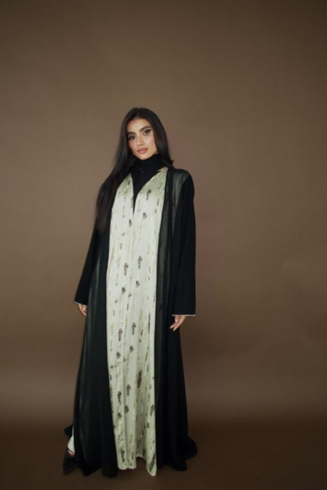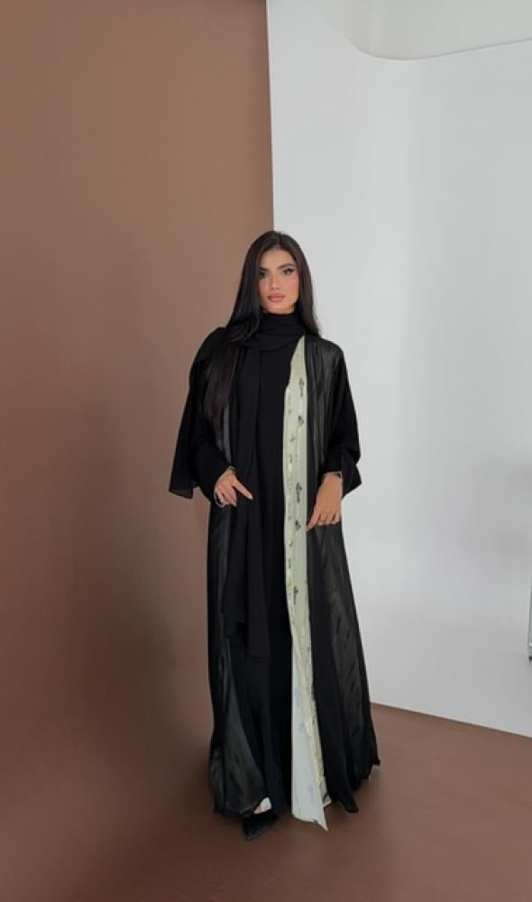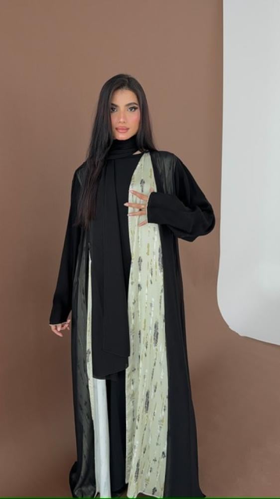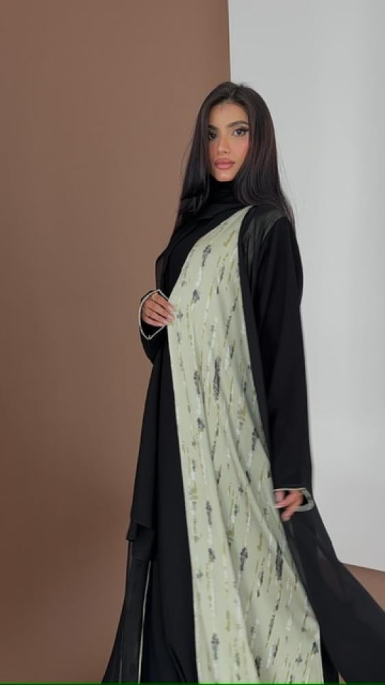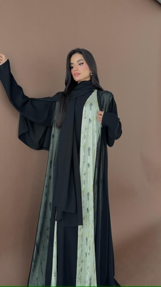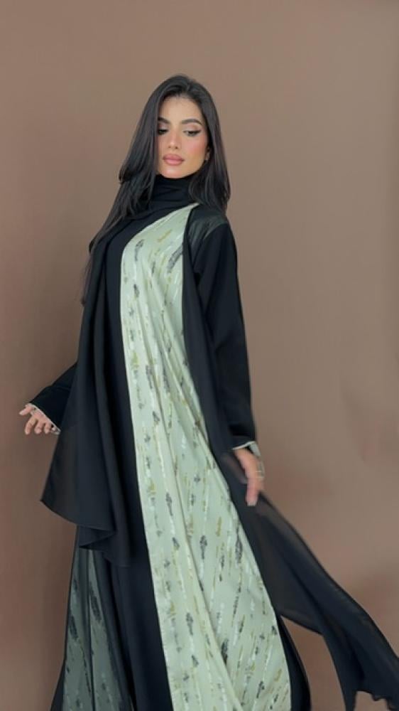 القماش كريب اسود + كريب مشجر اخضر فاتح + شيفون من الامام