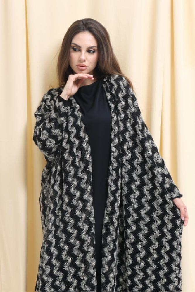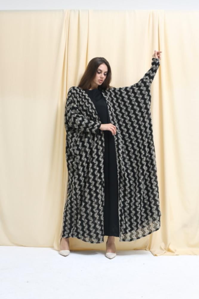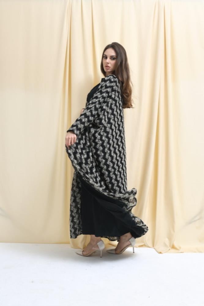 •القماش ميسوني اسود و بيج مبطن بشيفون " غير شفاف "