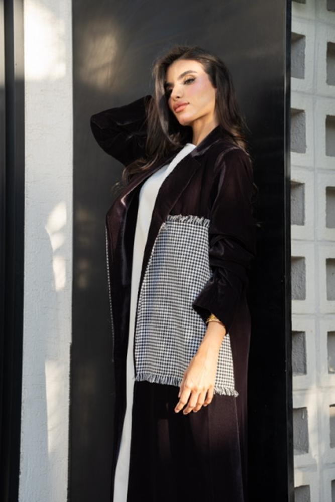 القماش مخمل رمادي غامق جداً X كاروهات صوف خفيف